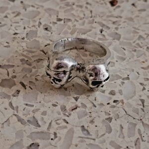 Oxidized Twin Skulls Men's Ring