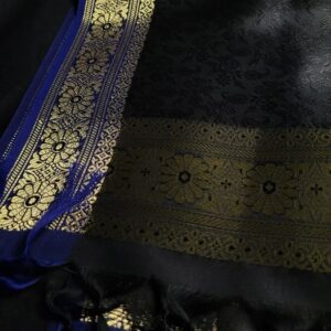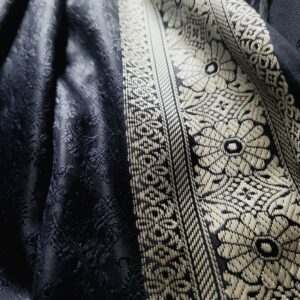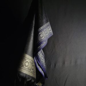 Black with Golden Border Banarasi Handmade Silk Scarf
