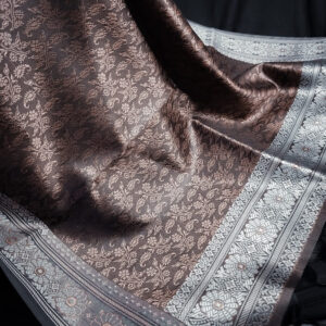 Earthy brown & White Banarasi Brocade Handmade Silk Scarf