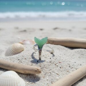 Whale Tail Serenity Ring Green Enamel Women's Ring (Exclusive)