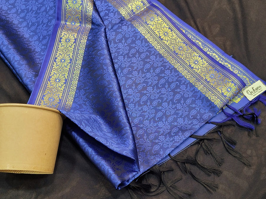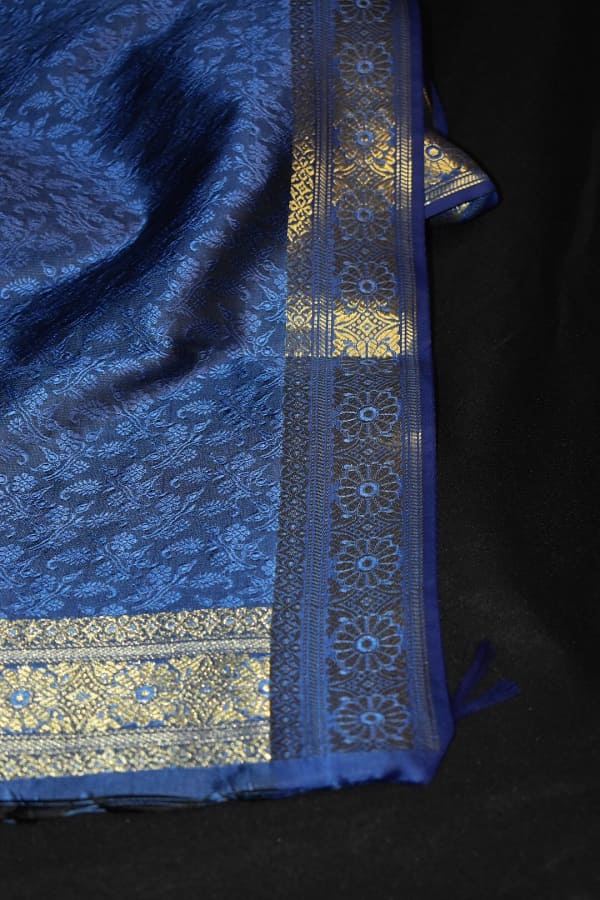 Navy Blue with Golden border Banarasi Handmade Silk Scarf