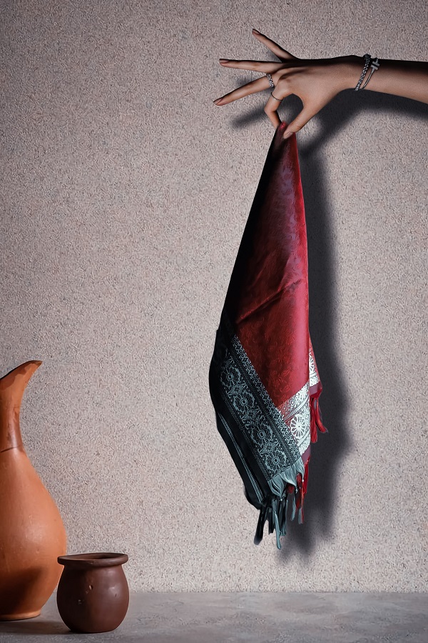 Maroon & Black Banarasi Brocade Handmade Silk Scarf