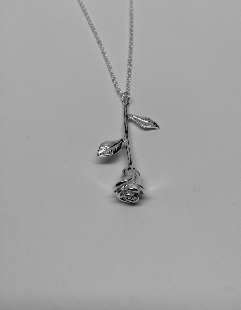 Oxidized Rose flower pendant necklace