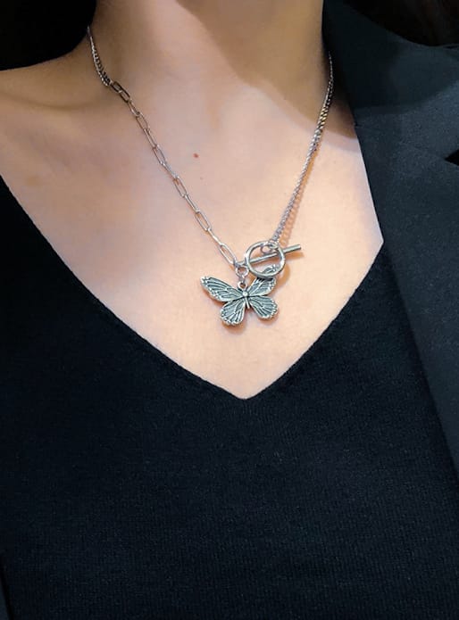 Oxidized Retro butterfly necklace