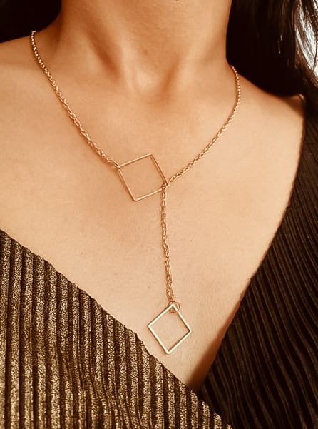 Oxidized Interlock Rectangle Bar Lariat Drop Necklace