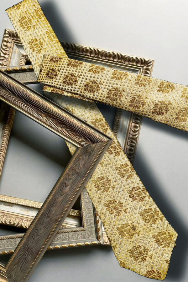 Banarasi brocade silk deep Cream yellow Handmade Necktie EXCLUSIVE COLLECTION