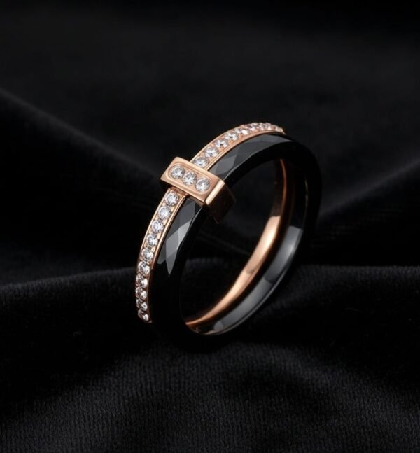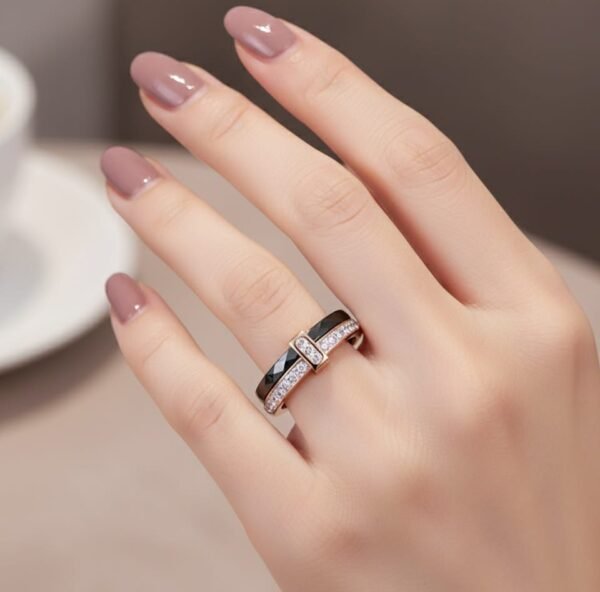 Black 2 row Ceramic Crystal Rhinestone Women’s Ring