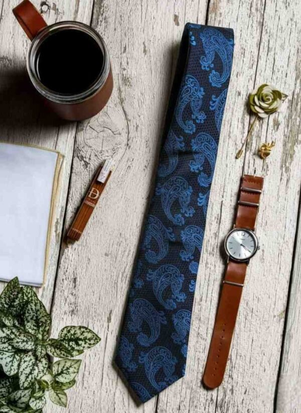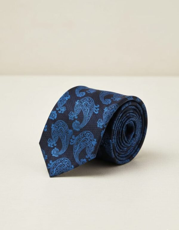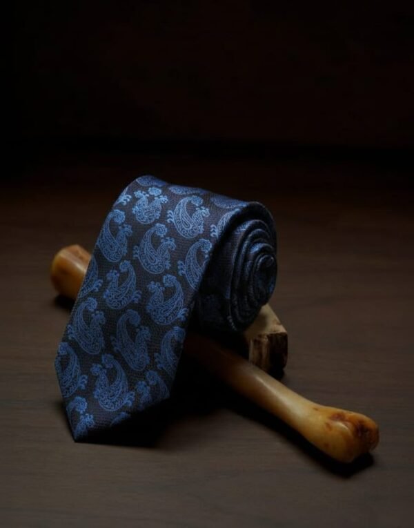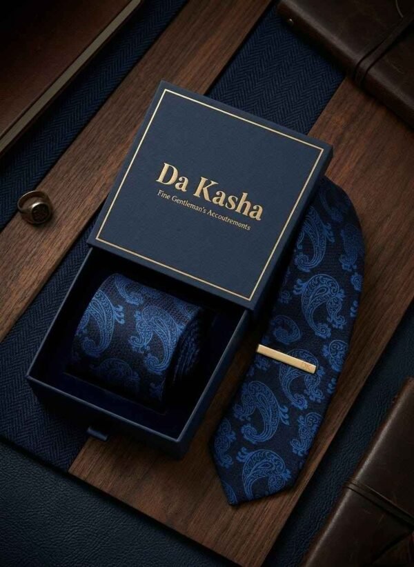 In the world of refined elegance, Da Kasha unveils its latest creation: a paisley-patterned necktie that embodies timeless sophistication. The deep midnight blue canvas whispers of mystery and power, while the lighter blue paisley motifs dance like flowing rivers of heritage and artistry. Each teardrop curve is more than an ornament—it is a symbol of continuity, prosperity, and the eternal rhythm of life. Worn with confidence, the Da Kasha paisley tie transforms formal attire into a canvas of individuality. It is the finishing touch that elevates presence, commanding admiration in boardrooms, galas, and intimate soirées alike.
