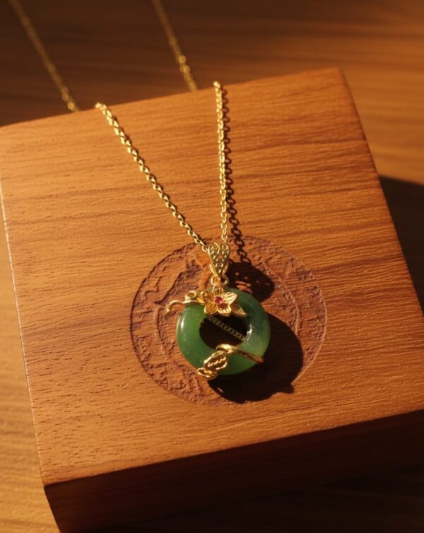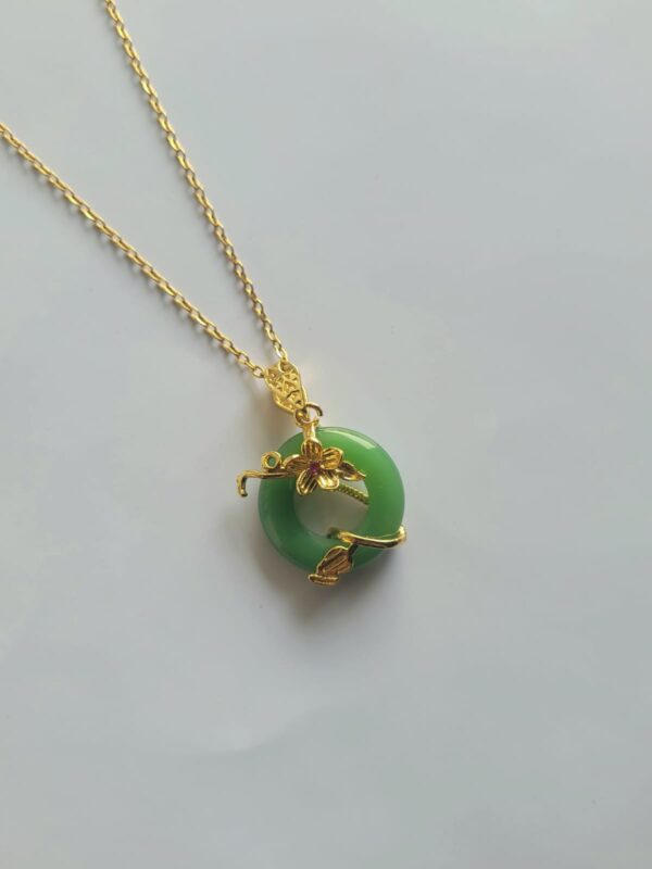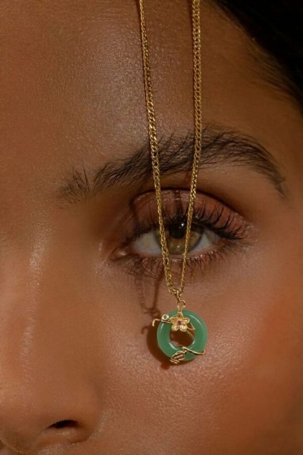 - Inspiration: Inspired by the quiet poetry of nature, this pendant draws from the serene beauty of jade and the delicate bloom of spring flowers. Each element—from the soft green stone to the floral gold detailing—echoes themes of renewal, grace, and feminine strength. It’s a piece that speaks not just to style, but to soul.