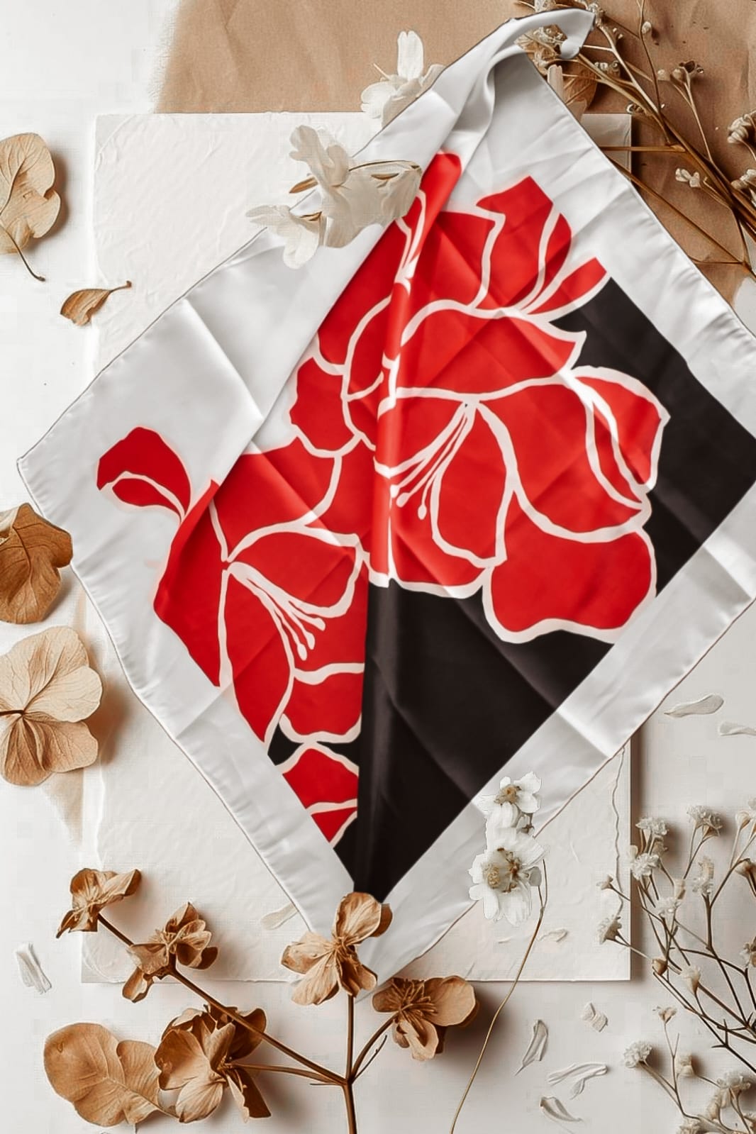 Satin Silk Red Floral Scarf