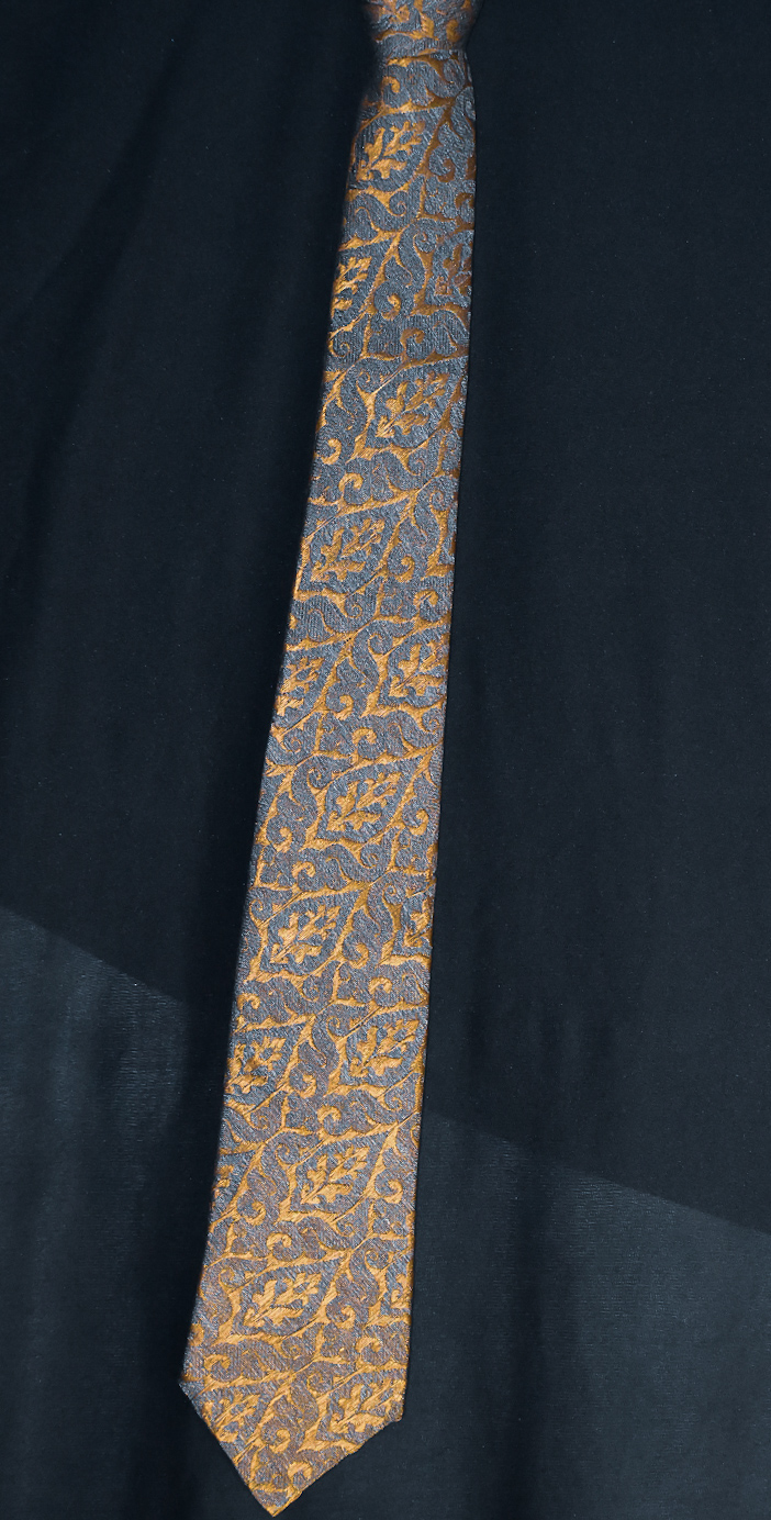 Banarasi Jacquard Grey Golden fabric Handmade Necktie EXCLUSIVE COLLECTION