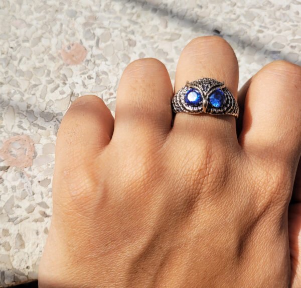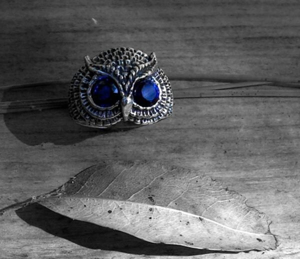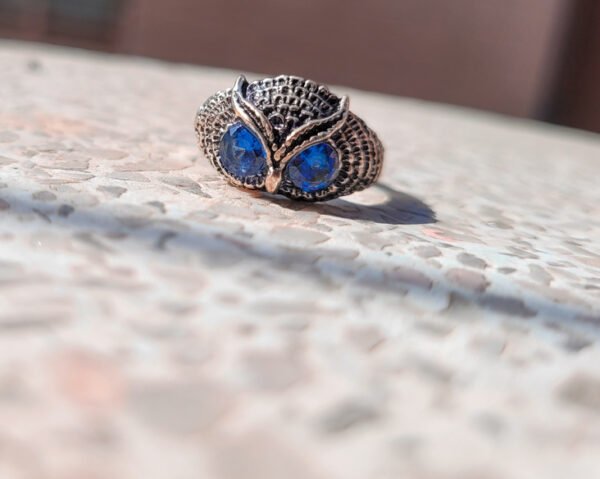 Oxidized Turquoise eyes Owl Men’s Ring