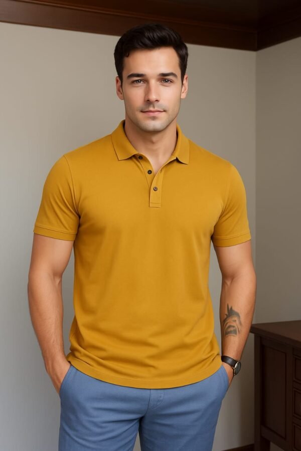 Step into effortless style with our Earthy Bliss Polo T-Shirt, crafted for men who appreciate a refined yet casual look. The warm mustard-earth tone adds a touch of grounded elegance, making it perfect for both weekday meetings and weekend outings. Designed with a modern fit, it blends comfort and sophistication seamlessly.