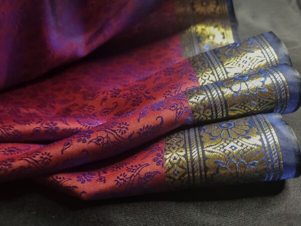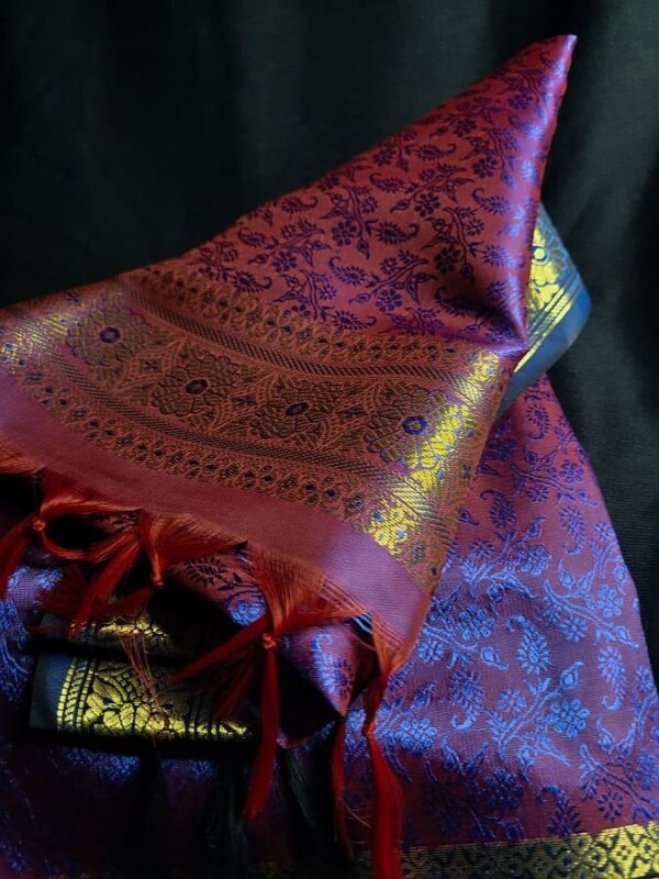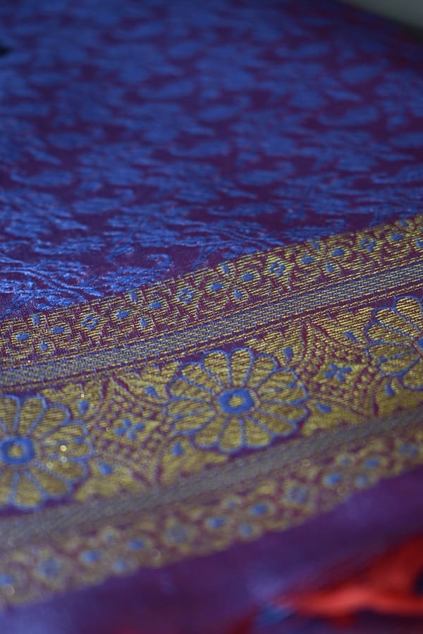 Red Purple Tone Banarasi Silk Scarf Handmade