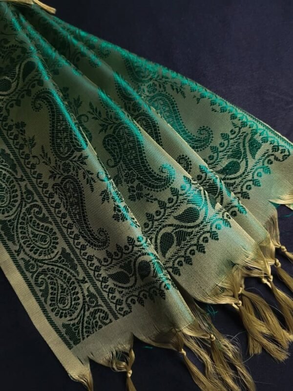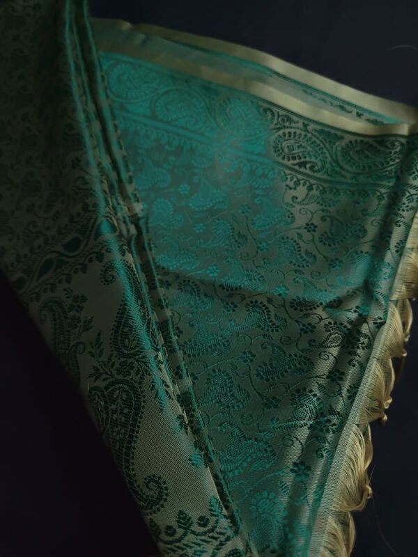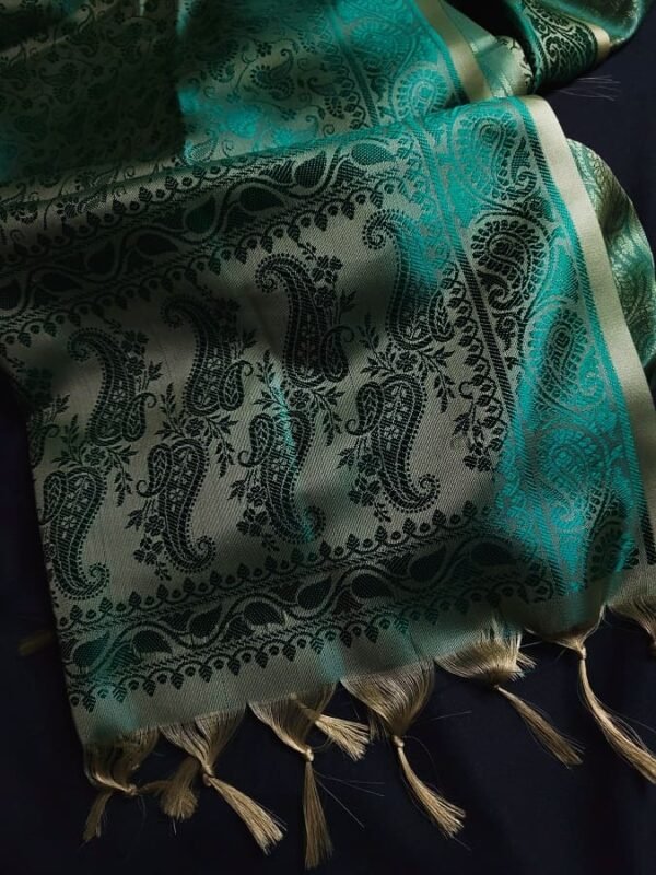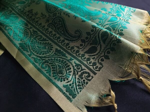 Teal green & Golden dual-tone Banarasi Handmade Silk Scarf (Limited Edition)