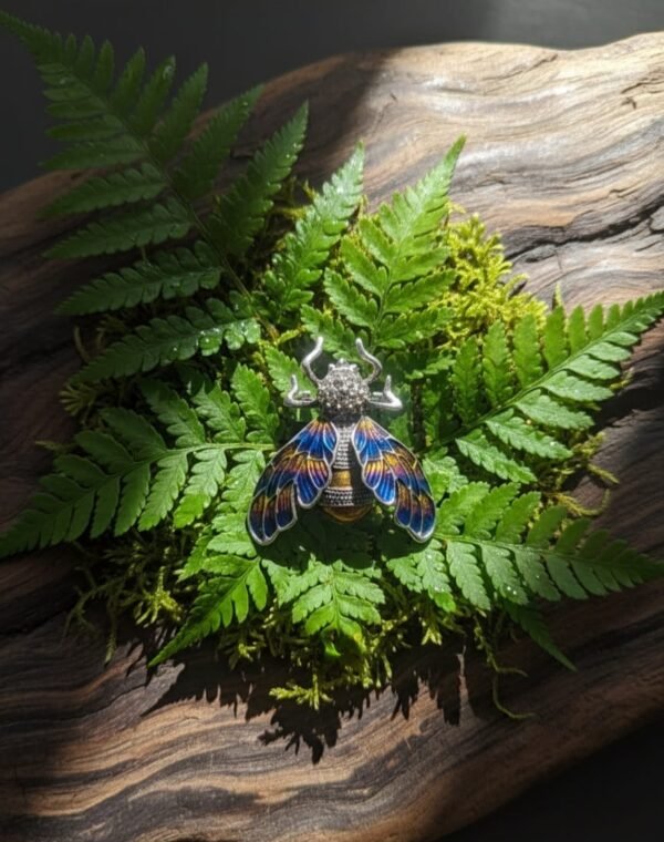 Inspiration: Inspired by the bee and fly, this piece channels themes of transformation, protection, and divine connection—perfect for those who wear meaning. Turn heads and spark conversations with The Alchemy Winged Brooch—a miniature masterpiece that marries nature’s mystique with artisanal elegance. Inspired by the sacred geometry of insects and the opulence of vintage enamel work, this brooch is more than an accessory—it’s a talisman of transformation. Crafted in the likeness of a bee or fly, this brooch features delicately sculpted wings adorned with blue, gold, and black enamel, shimmering like stained glass in sunlight.