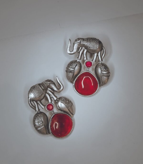 Vintage Style Oxidized Elephant Red Monalisa Stone Women’s Earrings