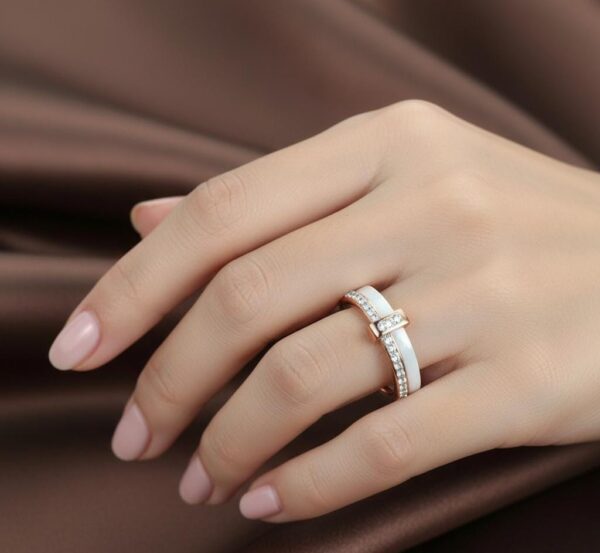 White 2 row Ceramic Crystal Rhinestone Women’s Ring