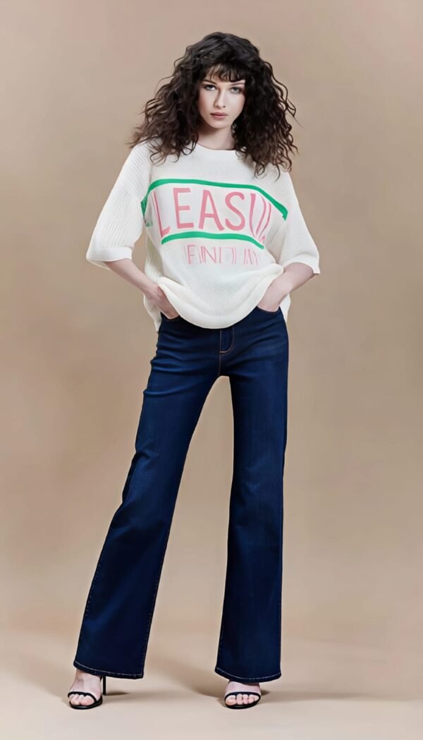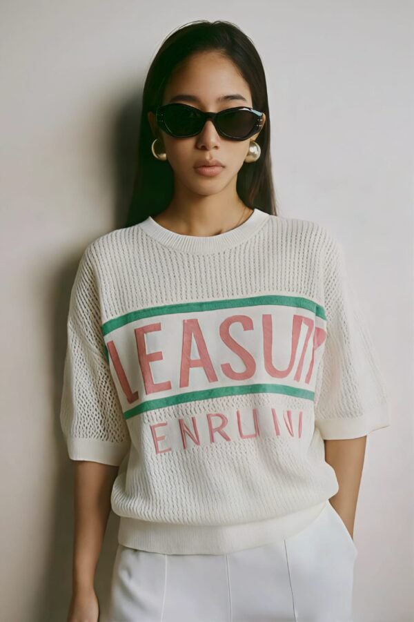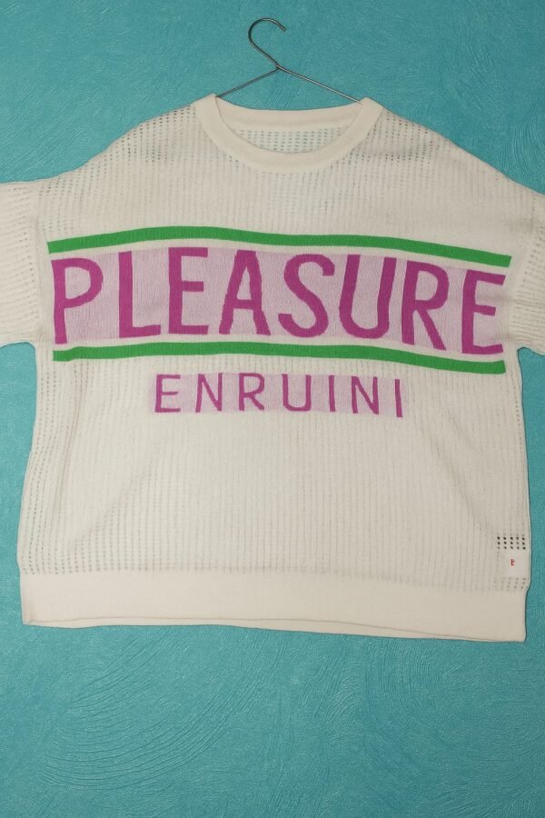 Da Kasha’s White Fine Knit T-Shirt “Pleasure” Statement Knit Top ✨