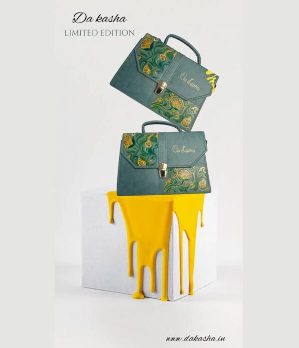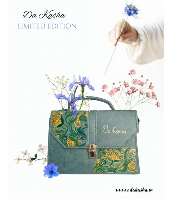 Da Kasha Women Teal Green Floral Handmade Handbag EXCLUSIVE COLLECTION